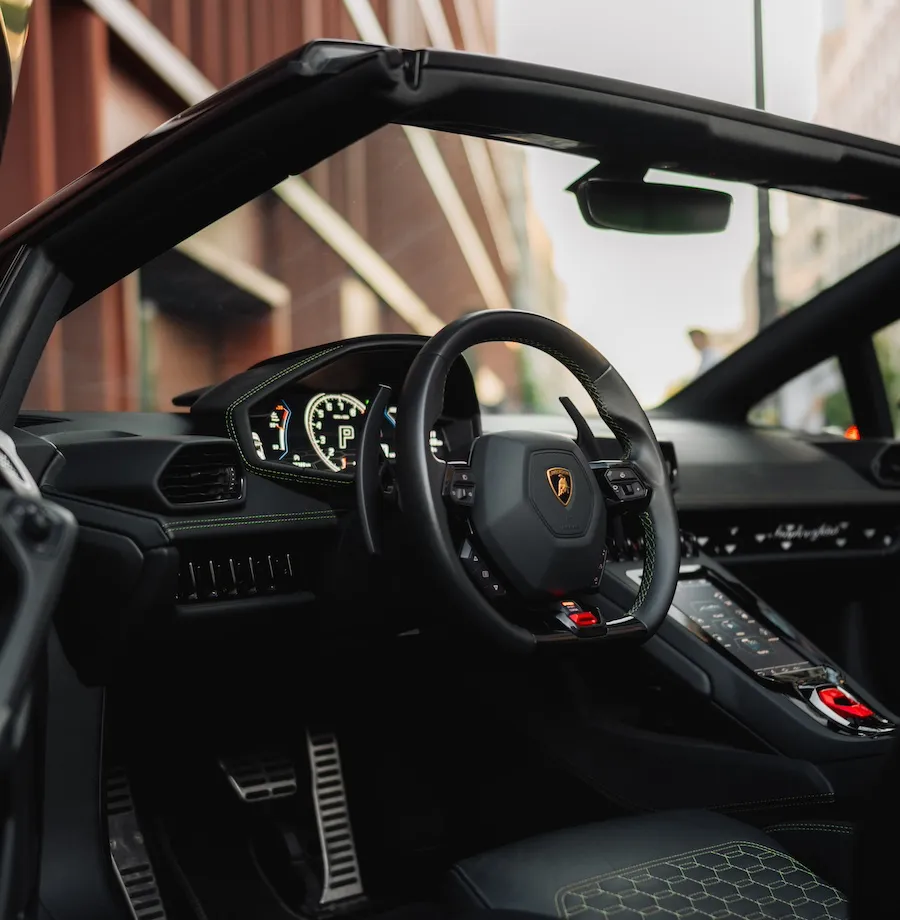 The Lamborghini Huracan Evo Spyder combines extreme performance with luxurious comfort. The interior of this supercar was designed to provide unparalleled comfort. Finished with premium materials such as Alcantara leather and carbon details, the interior exudes sporty luxury. The Lamborghini Huracan Evo Spyder is a true beast on the road. Equipped with a powerful 5.2-liter V10 engine with 640 horsepower, it accelerates from 0 to 100 km/h in just 2.9 seconds. A top speed of 325 km/h provides an unparalleled driving experience.